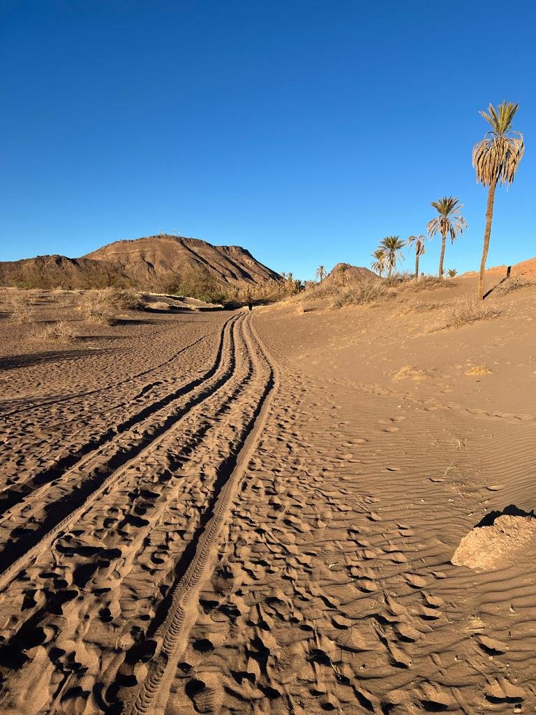 Départ matinal depuis le riad, alors que la lumière effleure à peine les contours du désert.